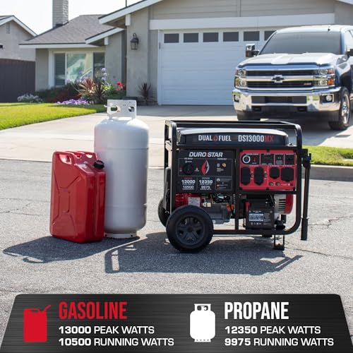 DuroStar DS13000MX 13,000-Watt 500cc Dual Fuel Portable Generator - Gas and Propane, Remote Electric Start, Whole Home Power Backup, Transfer Switch Ready, RV & Emergency Ready